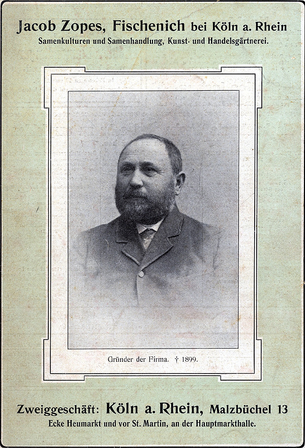 Bereits im Jahre 1868 gründete Jacob Zopes, der Ur-Ur-Großonkel von Peter Zopes, eine Samenzucht und Samenhandlung, die bis in das Jahr 1974 weit über das Rheinland hinaus bekannt war. Jacob Zopes wurde für seine Produkte mit über hundert Gold- und Silbermaillen ausgezeichnet.